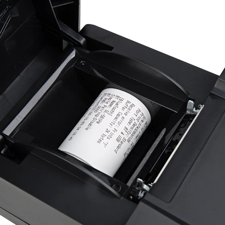 - Supports standard thermal paper: 58±0.5 mm width, thickness 0.05–0.09 mm