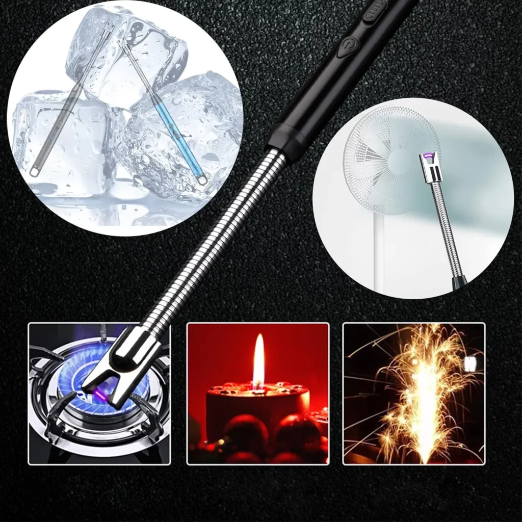 This USB rechargeable arc lighter is designed for safe, efficient, and eco-friendly ignition. Powered by a lithium-ion battery, it delivers a high-voltage electric arc that lights candles, stoves, grills, and more without flame or fuel. The flexible neck allows easy access to hard-to-reach places, while the built-in safety lock and auto shut-off features ensure safe usage. Ideal for indoor and outdoor use, this lighter combines modern technology with practical design.